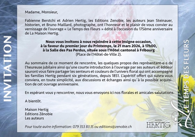 21.03.26 à 17h00. Vernissage de l'ouvrage «Le Temps des Fleurs» édité à l'occasion du 175ème anniversaire de la Maison Hertig.